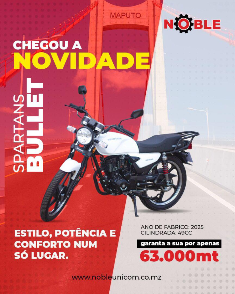 Cities in Mozambique are increasingly busy, especially in Maputo and Matola, which have been plagued by traffic jams, heavy traffic, and the constant demand for practical mobility solutions. It’s into this scenario that the new Spartans Bullet 49cc arrives, available at Noble Unicom stores, bringing a perfect blend of style, power, economy, and innovation. […]